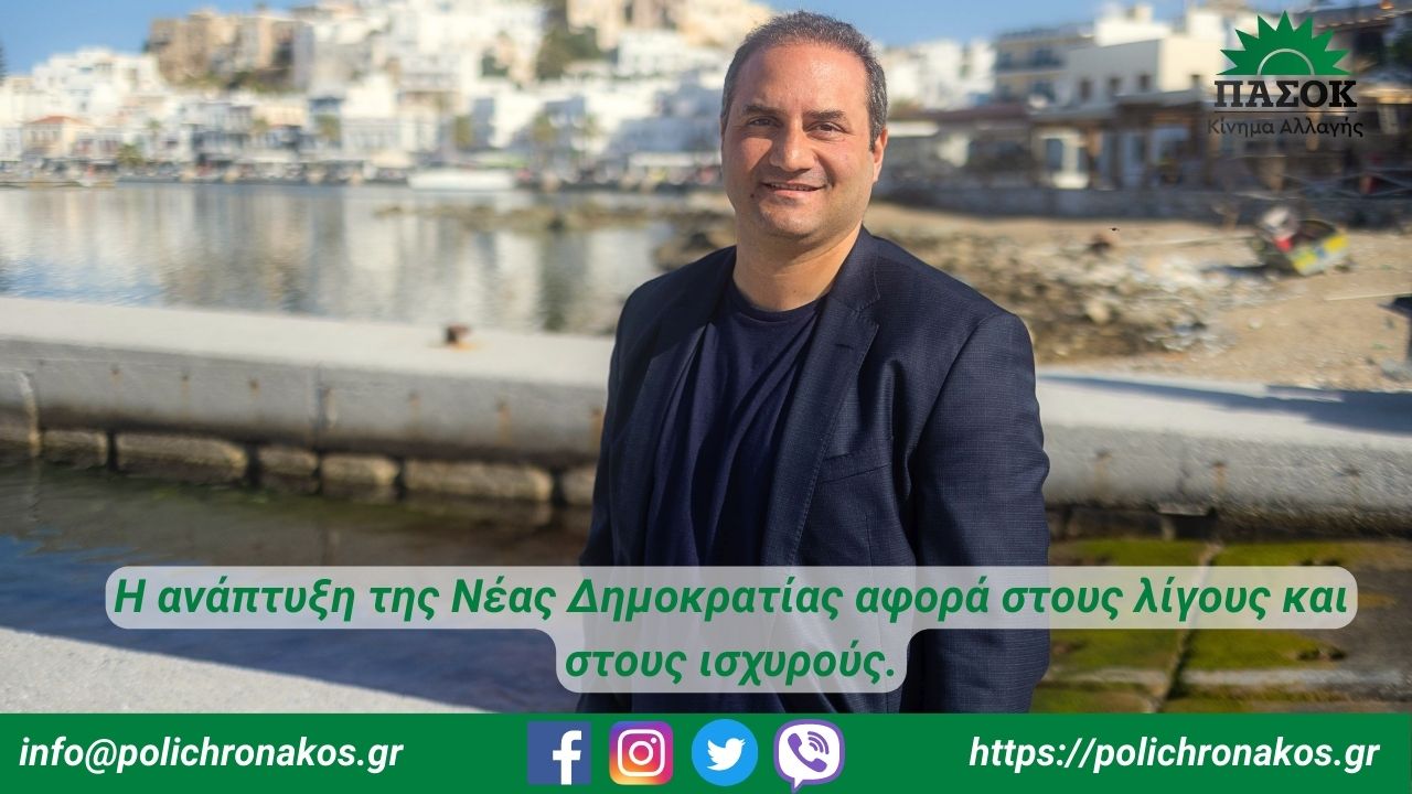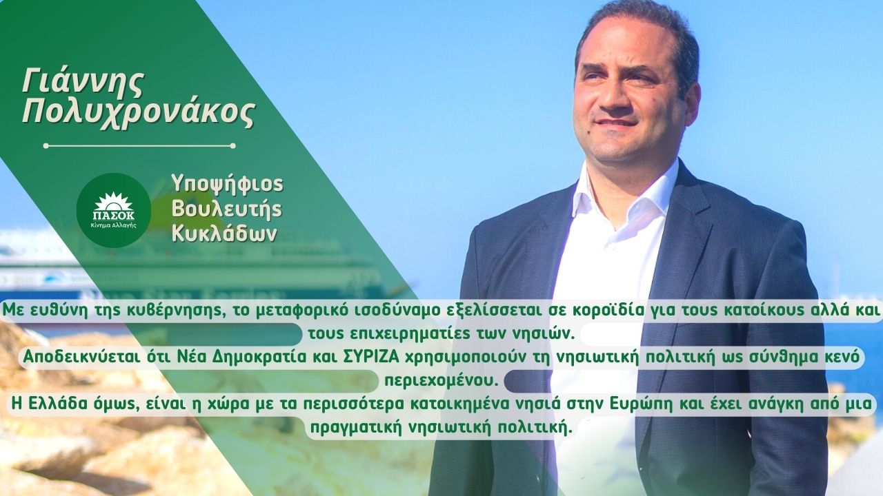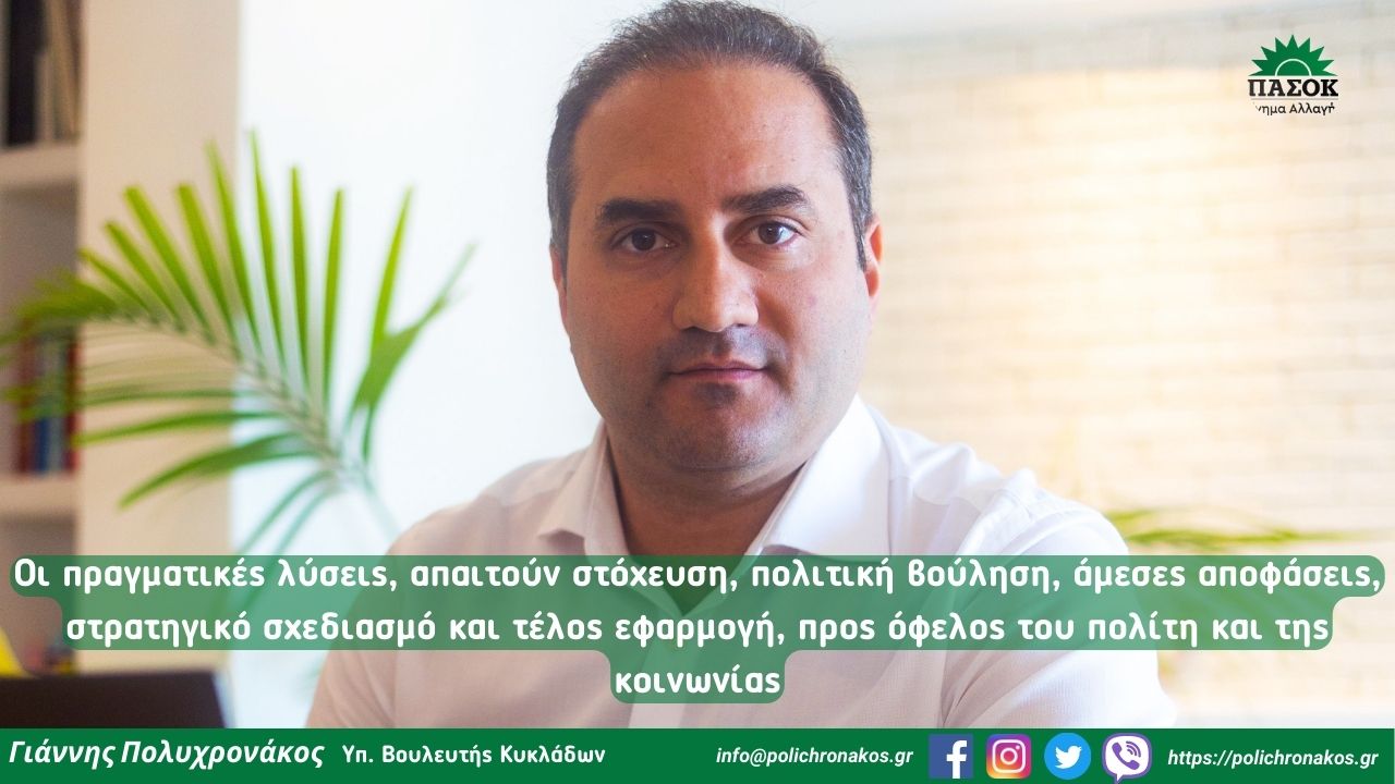 Ο αν.Τομεάρχης Νησιωτικής Πολιτικής του ΠΑΣΟΚ κ.Γιάννης Πολυχρονάκος, έκανε την ακόλουθη δήλωση: